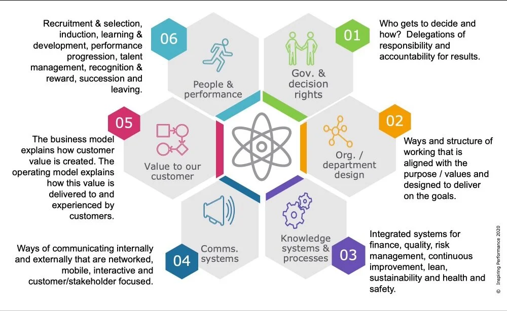 Here’s what I’d consider to be the elements of an operating model for an organisation. Make sure your enterprise has clarity and alignment for each element.