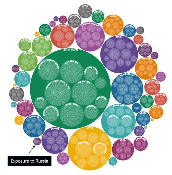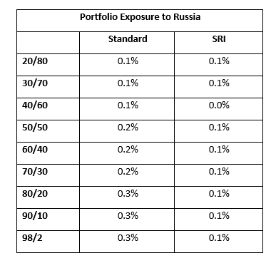 The visual below illustrates the exposure to Russia in the standard 98/2 portfolio: