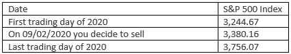 Example: Let’s take the S&P 500 index in 2020 for perspective.