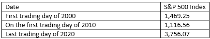 S&P500 1 January 2000 - 31 December 2020