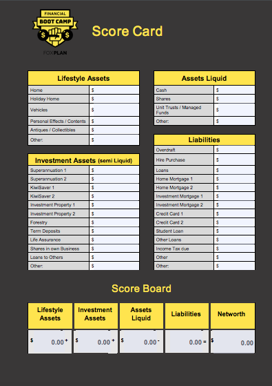 So today, we have 2 tools for you to use. The first being a simple Net Worth Calculator (ScoreCard) and the second being our Investment Slider to help show you the positive effects of compound interest (in your favour).